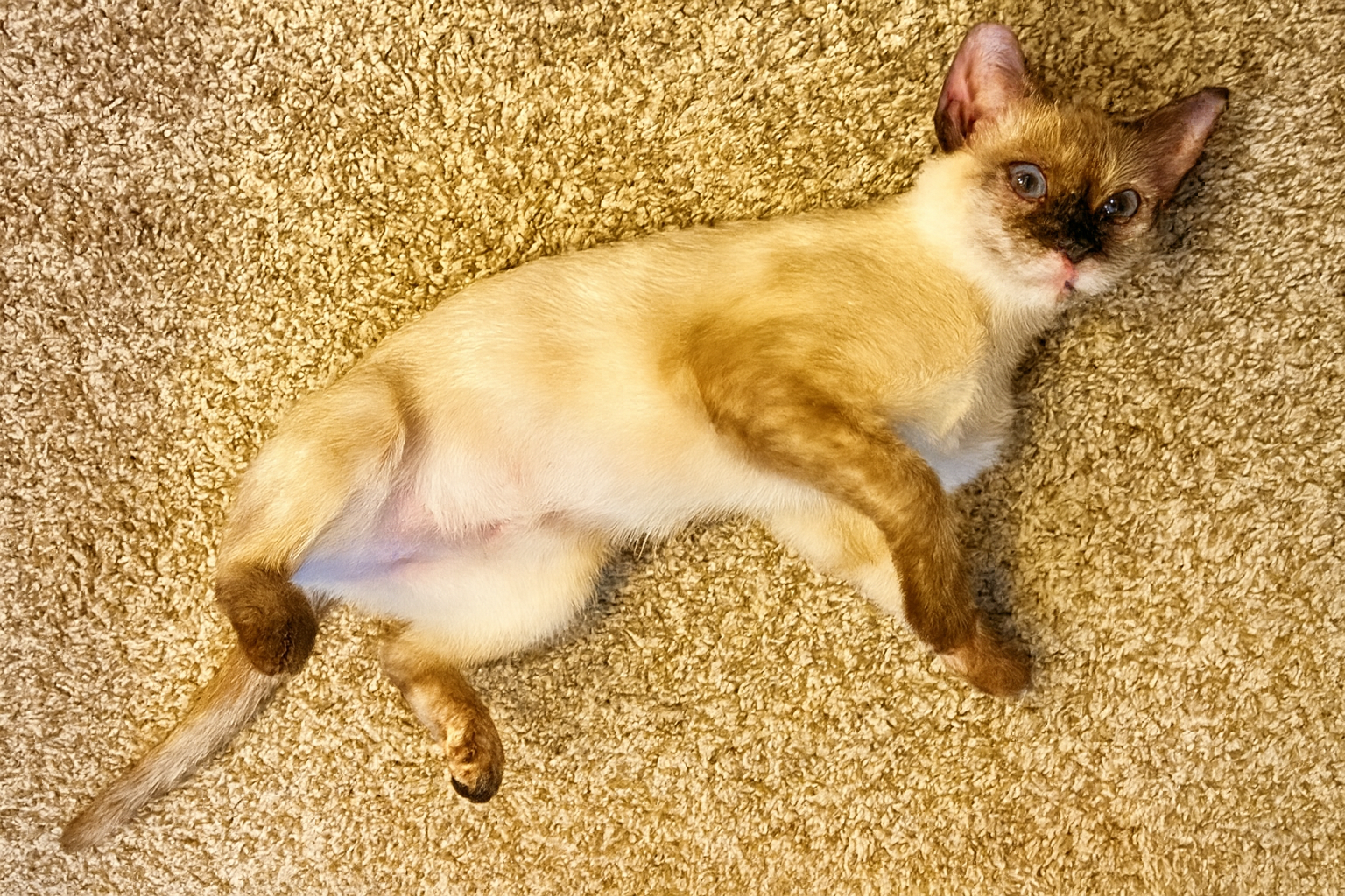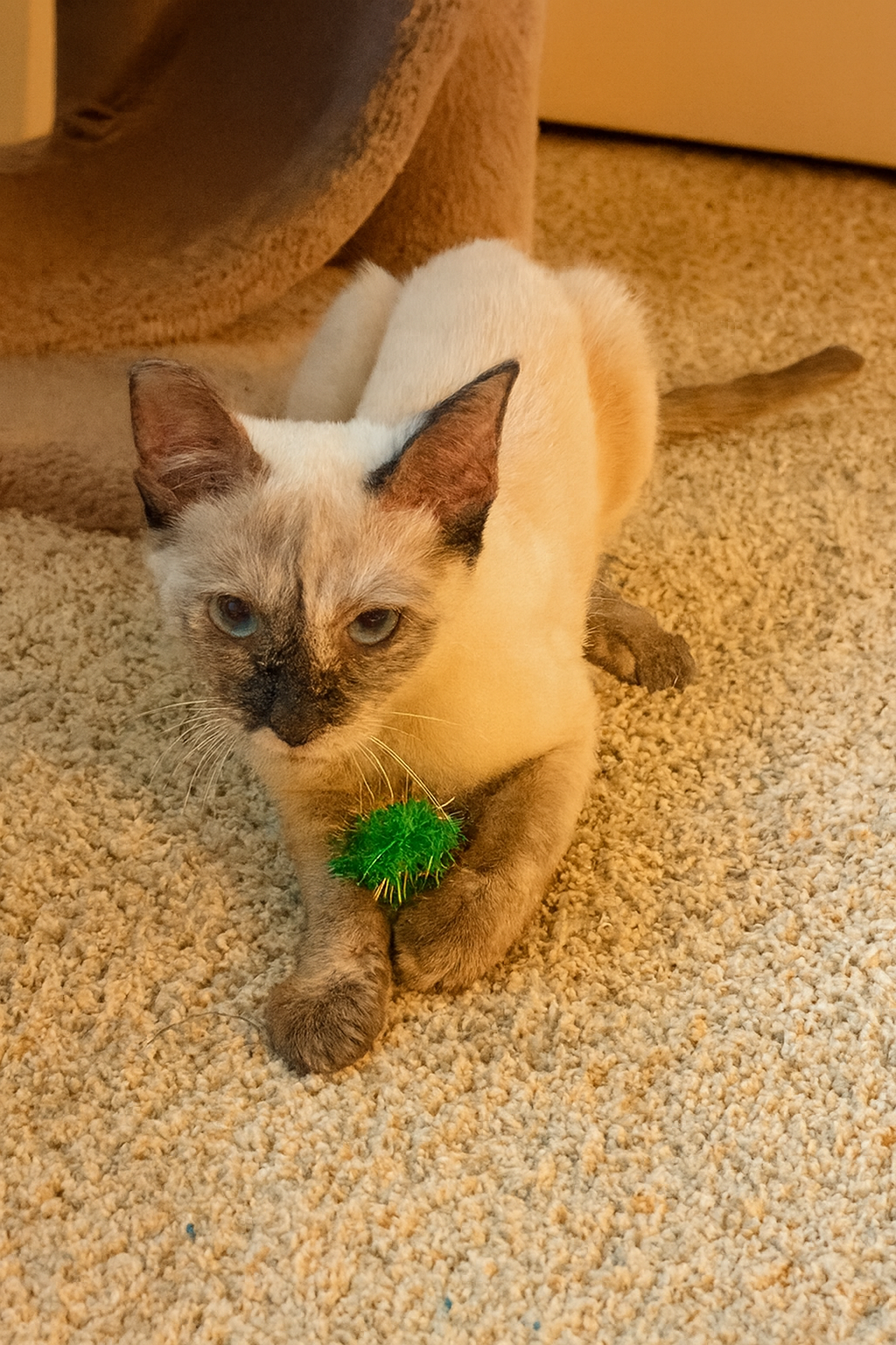 This breathtaking color point kitty has Siamese-style markings, dazzling blue eyes, and a personality every bit as enchanting as her (updated) name.