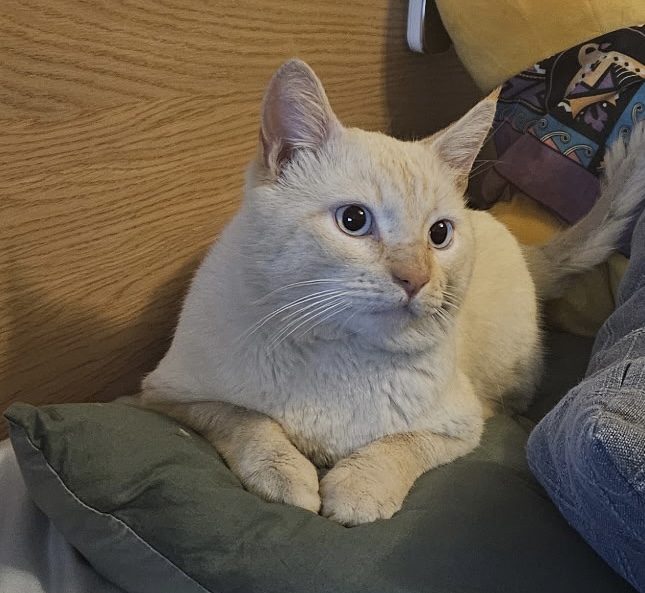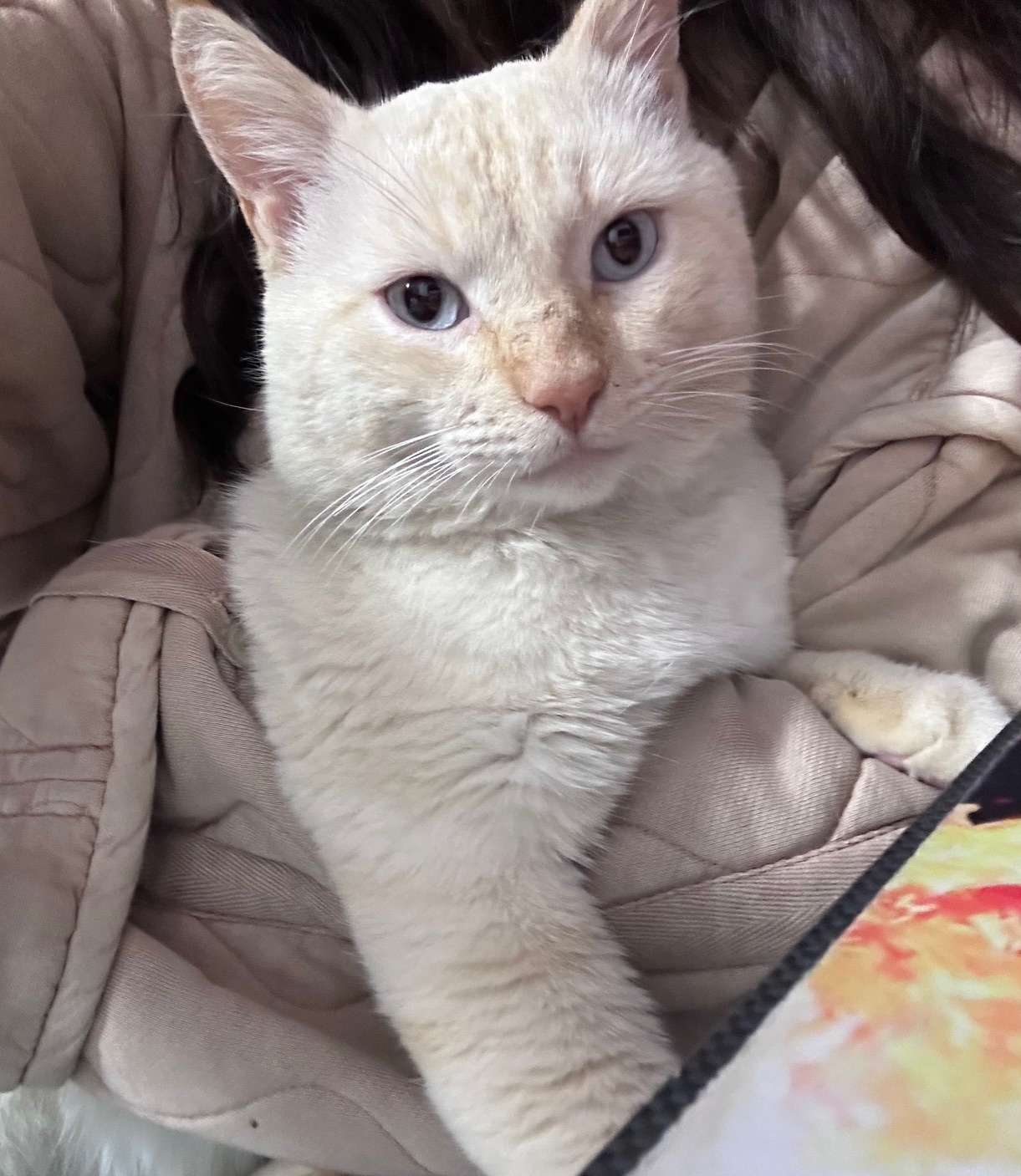 Costco is super outgoing and very clingy with his human foster. He loves attention and wants to be close to his person. Like many Siamese-type cats, he also has a lot to say and speaks a language all his own. 🗣️🐱